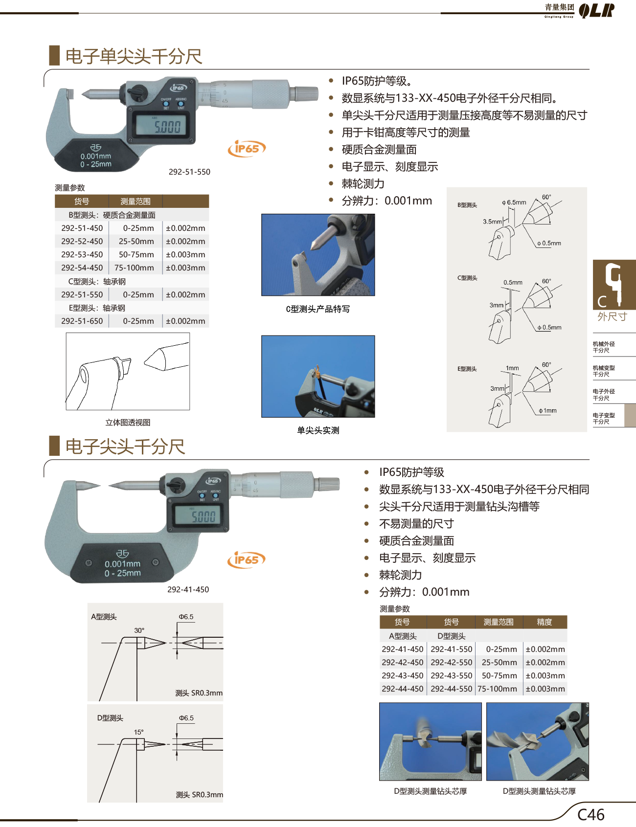 刻线电子数显尖头千分尺,双尖头,15°,30°